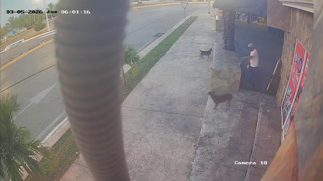 Imágenes de una videocámara muestran el momento en que el caco sale del inmueble, y sin prisa ni preocupación pasa sobre una reja y se retira. Tres ejemplares caninos lo esperaban en la banqueta y se retiraron con él.
