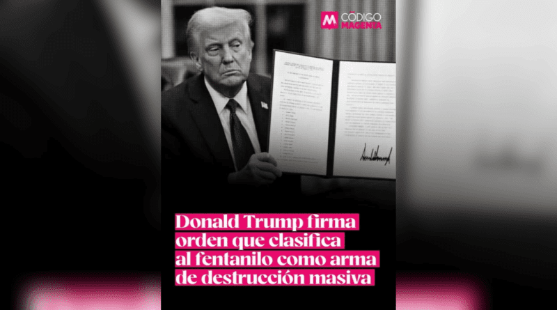 En un lenguaje que eleva el umbral político para pedir cooperación, intercambio de inteligencia y presión financiera, y también multiplica los incentivos para rutas de acción más agresivas como una intervención militar directa, lo que pone en la mira a México por considerarlo de nuevo como “la fuente más significativa”, el presidente de Estados Unidos, Donald Trump, firmó una orden ejecutiva que designa al “fentanilo ilícito” y a sus “químicos precursores centrales” como armas de destrucción masiva, dio a conocer Código Magenta.
