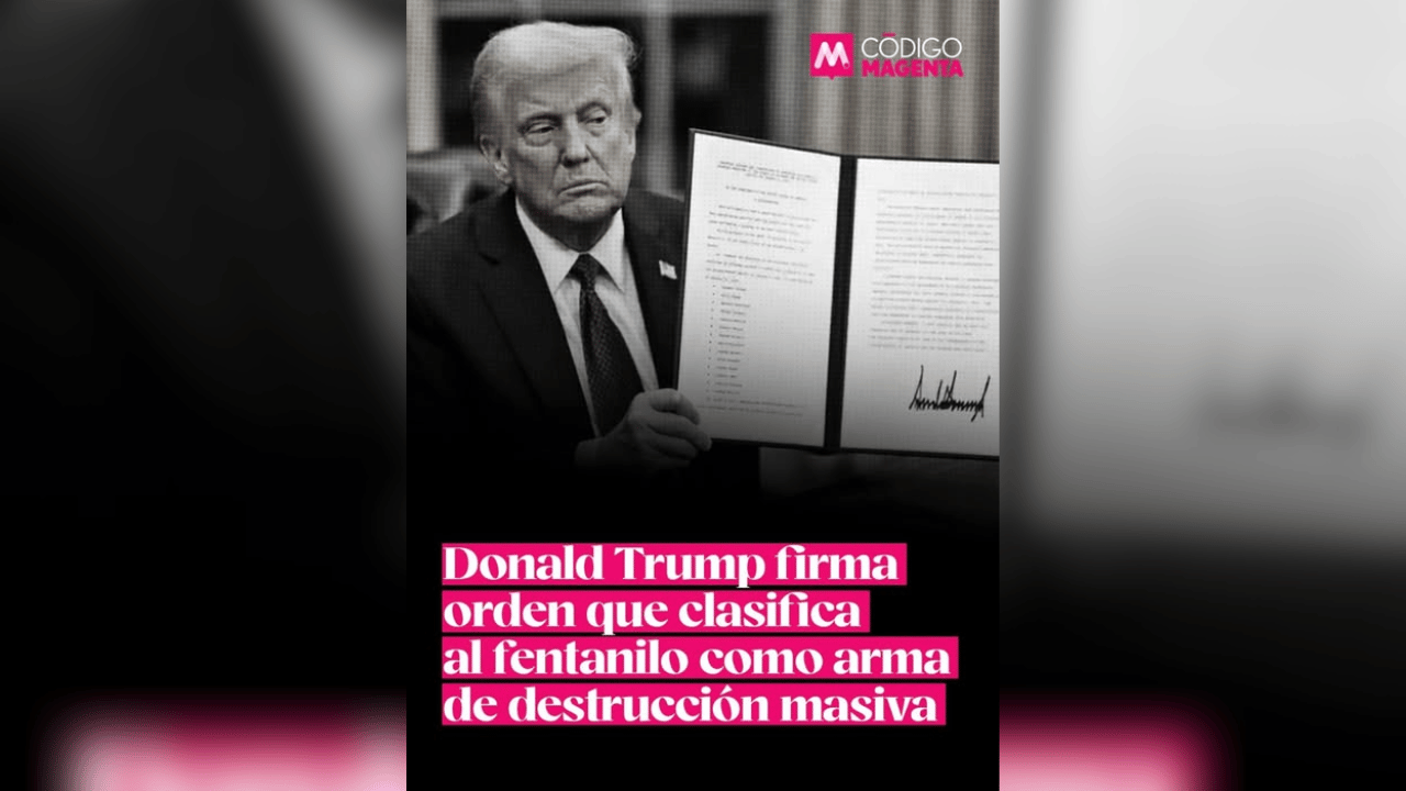 En un lenguaje que eleva el umbral político para pedir cooperación, intercambio de inteligencia y presión financiera, y también multiplica los incentivos para rutas de acción más agresivas como una intervención militar directa, lo que pone en la mira a México por considerarlo de nuevo como “la fuente más significativa”, el presidente de Estados Unidos, Donald Trump, firmó una orden ejecutiva que designa al “fentanilo ilícito” y a sus “químicos precursores centrales” como armas de destrucción masiva, dio a conocer Código Magenta.