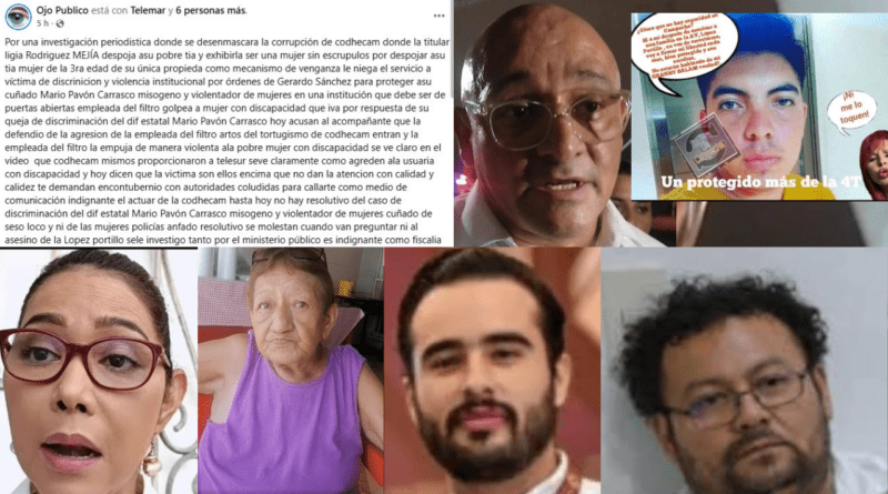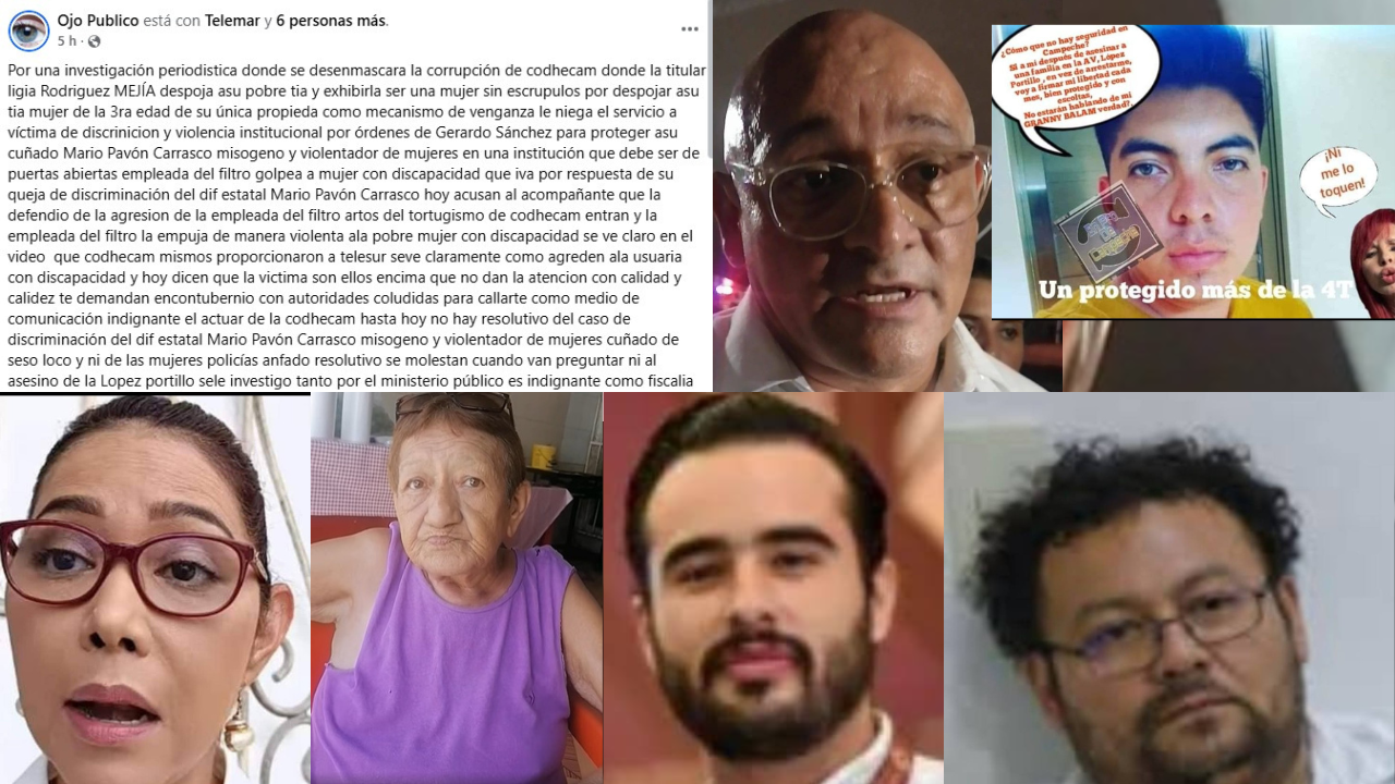 En una publicación difundida en sus redes sociales, la página Ojo Público consideró indignante el actuar de la presidenta de la Comisión de Derechos Humanos del Estado de Campeche (Codhecam), Ligia Rodríguez Mejía, quien además de haber sido exhibida por despojar a una tía, de la tercera edad, de su única propiedad, de lo cual no hay información disponible sobre cómo va el caso, hasta el momento no emite resolutivo por los casos de la víctima de discriminación y violencia institucional en el DIF Estatal, donde, expone, Mario Pavón Carrasco es protegido por órdenes de su cuñado Gerardo “Seso Loco” Sánchez, y tampoco por el de las mujeres policiacas que participaron en el operativo fallido en el penal de Kobén. También recrimina que la Fiscalía estatal sea utilizada como instrumento de venganza y que el asesino de la López Portillo no hay sido investigado por el Ministerio Público.