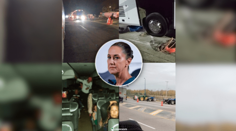 La regidora de Juárez, María Dolores Adame, denunció que desde las 4 de la tarde del miércoles, 65 personas que viajaban en dos autobuses hacia la Ciudad de México, para el festejo de los 7 años de la 4T de la presidenta Claudia Sheinbaum, fueron retenidos en la caseta de Saucillo, Chihuahua, por agricultores.