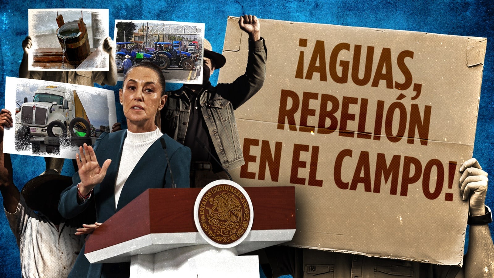El reportaje subraya que el conflicto más delicado surge por la Ley de Aguas dos mil veinticinco, al convertir en delitos penales retrasos, reducciones o fallas en concesiones de pozos y norias, eliminar la posibilidad de heredar o traspasar permisos y permitir al Estado expropiarlos si dejan de usarse. Agricultores denuncian que la norma los criminaliza por trabajar sus tierras y abre una nueva fuente de corrupción. Con miles de productores listos para bloquear puntos estratégicos, especialmente fronterizos, se alerta que el gobierno podría perder no solo las calles, sino también las carreteras, afectando exportaciones, importaciones y cadenas de producción en México, Estados Unidos y Canadá. El análisis concluye que la indignación del campo no debe subestimarse.