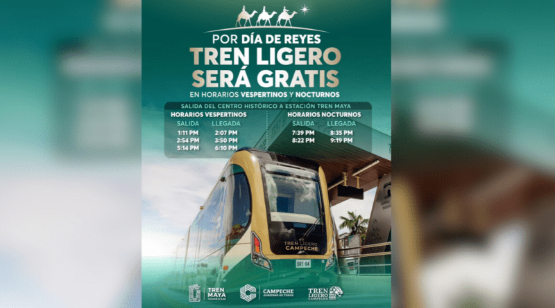 Como si se beneficiara a miles de ciudadanos, la gobernadora Layda Sansores anunció que por el Día de Reyes, el Tren Ligero tendrá horario especial y gratuito hoy 5 de enero.