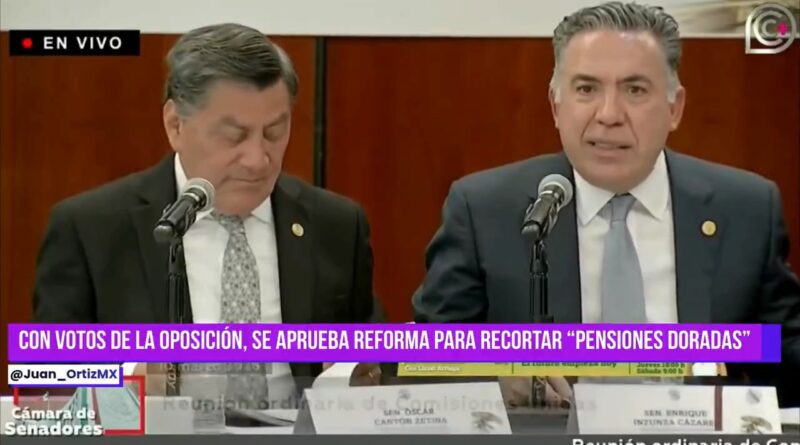 En comisiones del Senado aprobaron la reforma para limitar las llamadas pensiones millonarias que reciben exfuncionarios de organismos públicos, con votos de Morena, PAN, PRI y Movimiento Ciudadano. El dictamen establece que estas pensiones —otorgadas en dependencias como Petróleos Mexicanos (Pemex) y la Comisión Federal de Electricidad (CFE)— no podrán superar los 70 mil pesos mensuales, monto equivalente al 50 por ciento del salario de la presidenta de la República. Además, la reforma contempla aplicación retroactiva, por lo que las pensiones que actualmente se pagan deberán ajustarse al nuevo límite cuando entre en vigor.