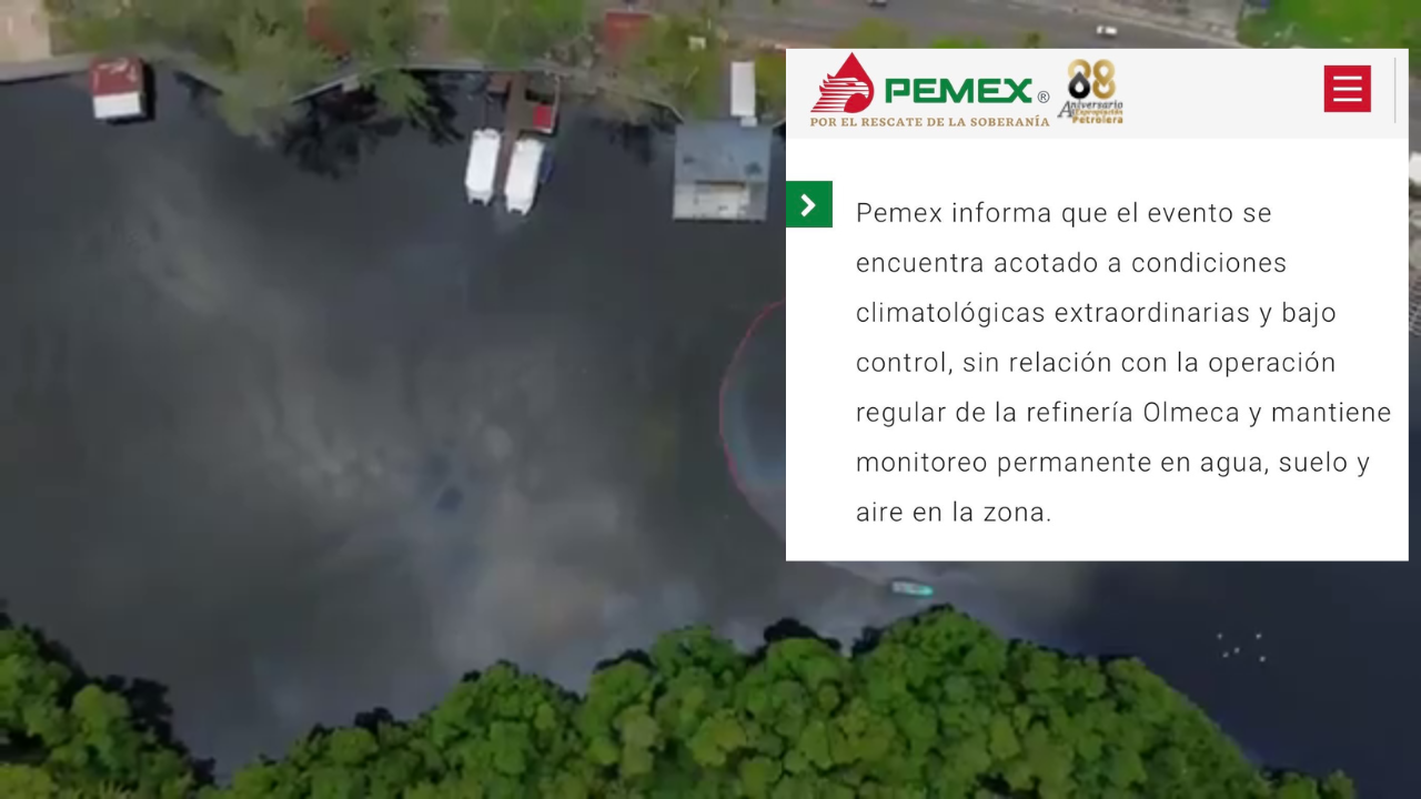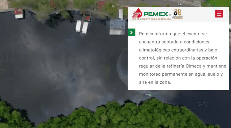 ASEGURA PEMEX QUE EL CLIMA ES CULPABLE DEL DERRAME DE LA REFINERÍA DE DOS BOCAS