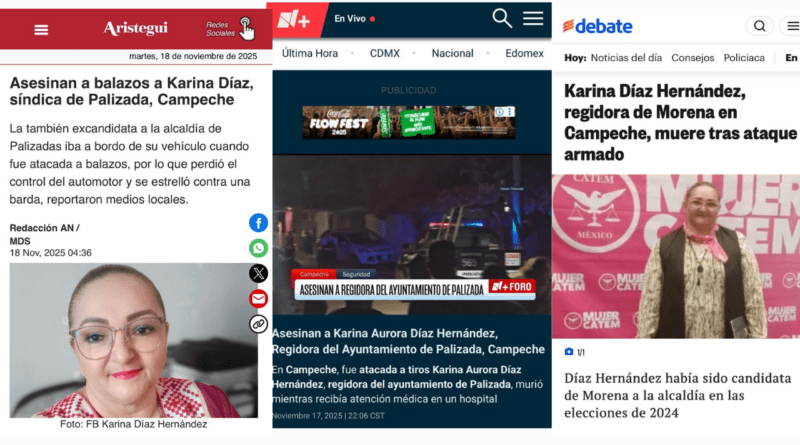 Otra vez nuestro estado de Campeche vuelve a ser foco de noticia en medios nacionales, pero por algo negativo, pues ahora la ejecución de la regidora paliceña Karina Díaz fue replicada por diversos medios.