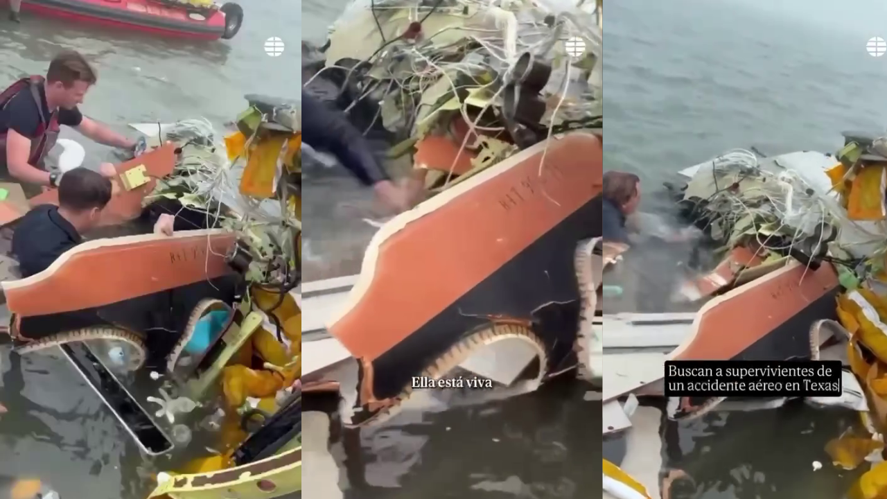 En el video que circula en redes sociales se observa el momento en que personal de rescate localiza a la mujer entre los restos de la aeronave y la auxilia para trasladarla a recibir atención médica.
