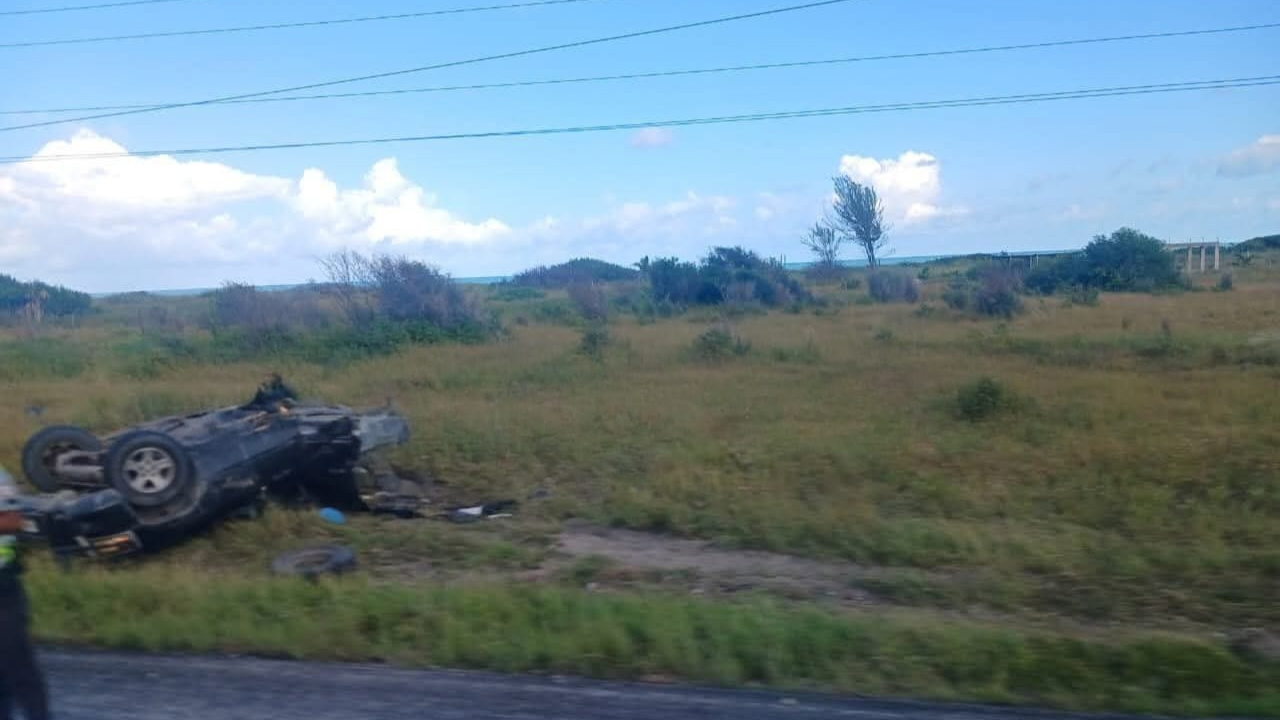 AUTO SE SALE DE LA CARRETERA Y QUEDA LLANTAS ARRIBA; NO HAY INFORME OFICIAL SOBRE HERIDOS Y CAUSAS