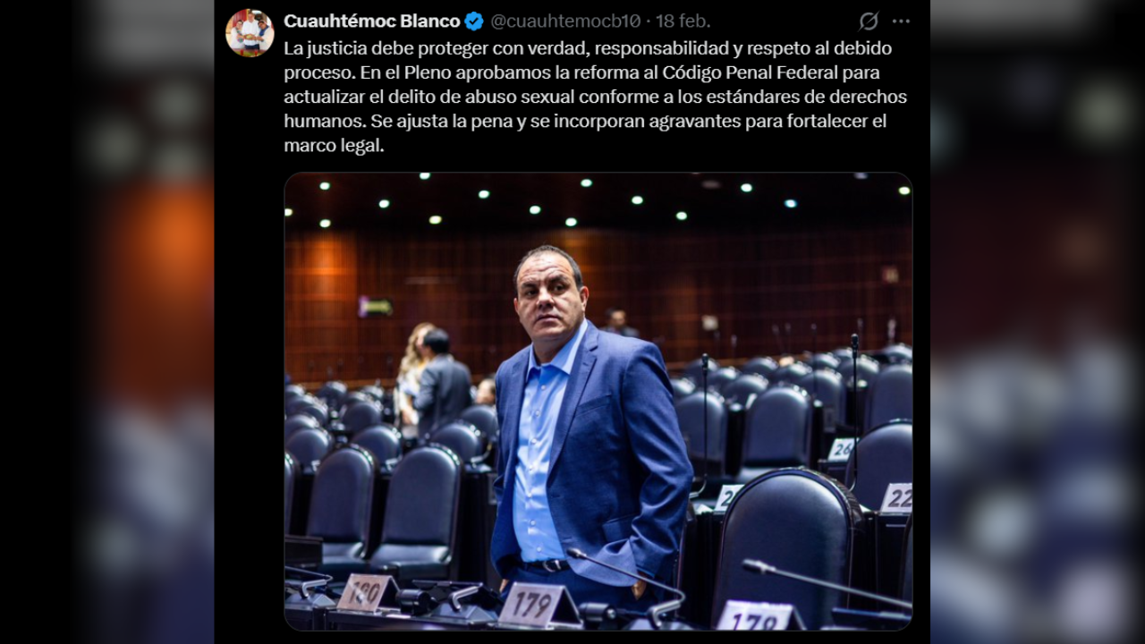Señalado públicamente por su media hermana por conductas del mismo tipo de las que trata la reforma contra el abuso sexual, el diputado Cuauhtémoc Blanco celebró que aprobaron dicho cambio al Código Penal Federal en la materia.