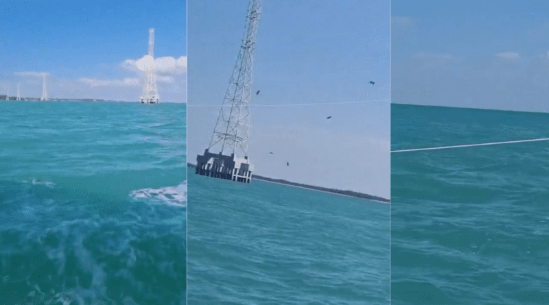 A través de un video, se observa que el cable permanece a baja altura, prácticamente a nivel del mar, lo que representa un riesgo latente para las embarcaciones menores que transitan entre la Laguna de Términos y el Golfo de México, tanto en actividades pesqueras como turísticas.