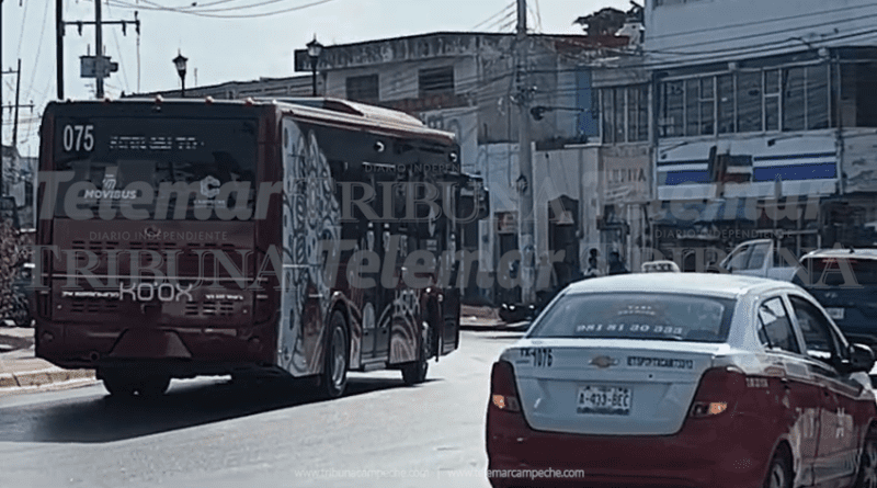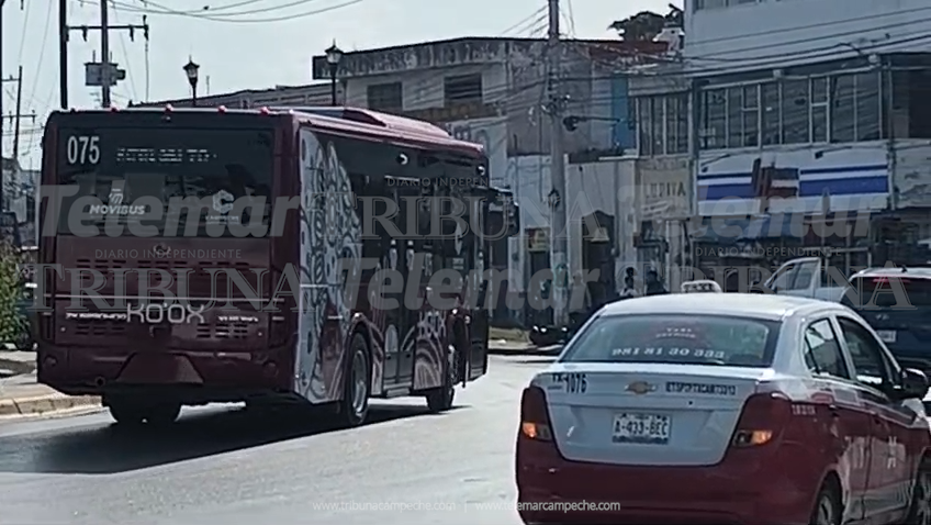 San Francisco de Campeche.- En medio de las largas filas de ciudadanos para cumplir con el pago del cambio de placas vehiculares, camiones del Ko’ox (075 y 104) circulan sin láminas, y la autoridad competente no interviene.