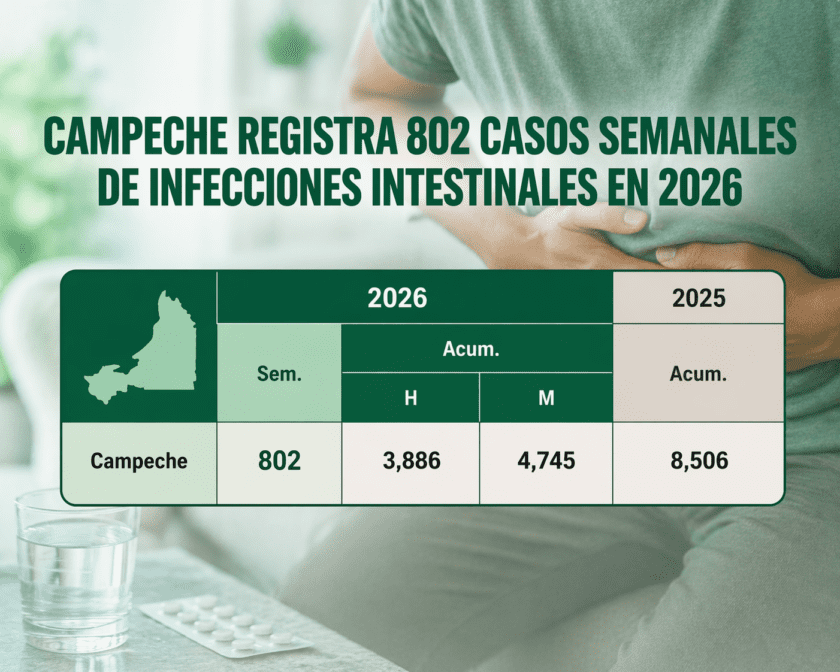 CAMPECHE REGISTRA 802 CASOS SEMANALES DE INFECCIONES INTESTINALES EN 2026