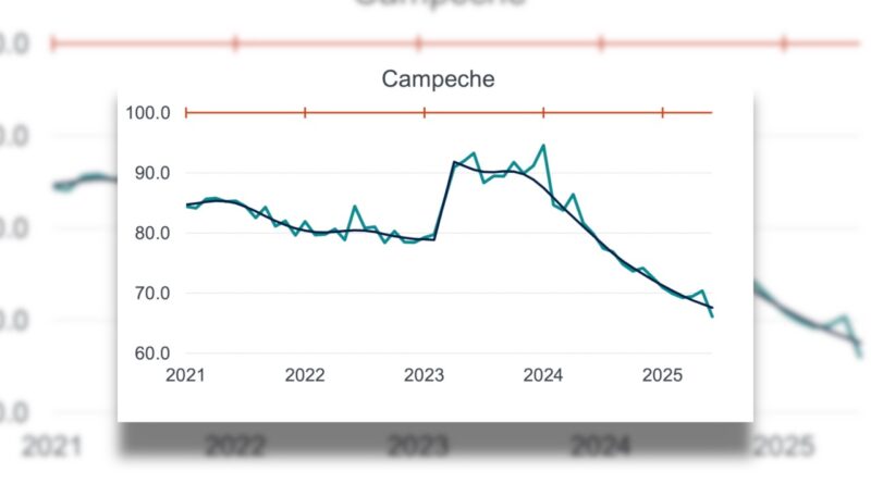 Campeche continúa sin mostrar señales de recuperación industrial y se mantiene entre los estados con peor desempeño del país, de acuerdo con el Indicador Mensual de la Actividad Industrial por Entidad Federativa (IMAIEF) del INEGI correspondiente a junio de 2025.