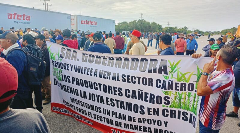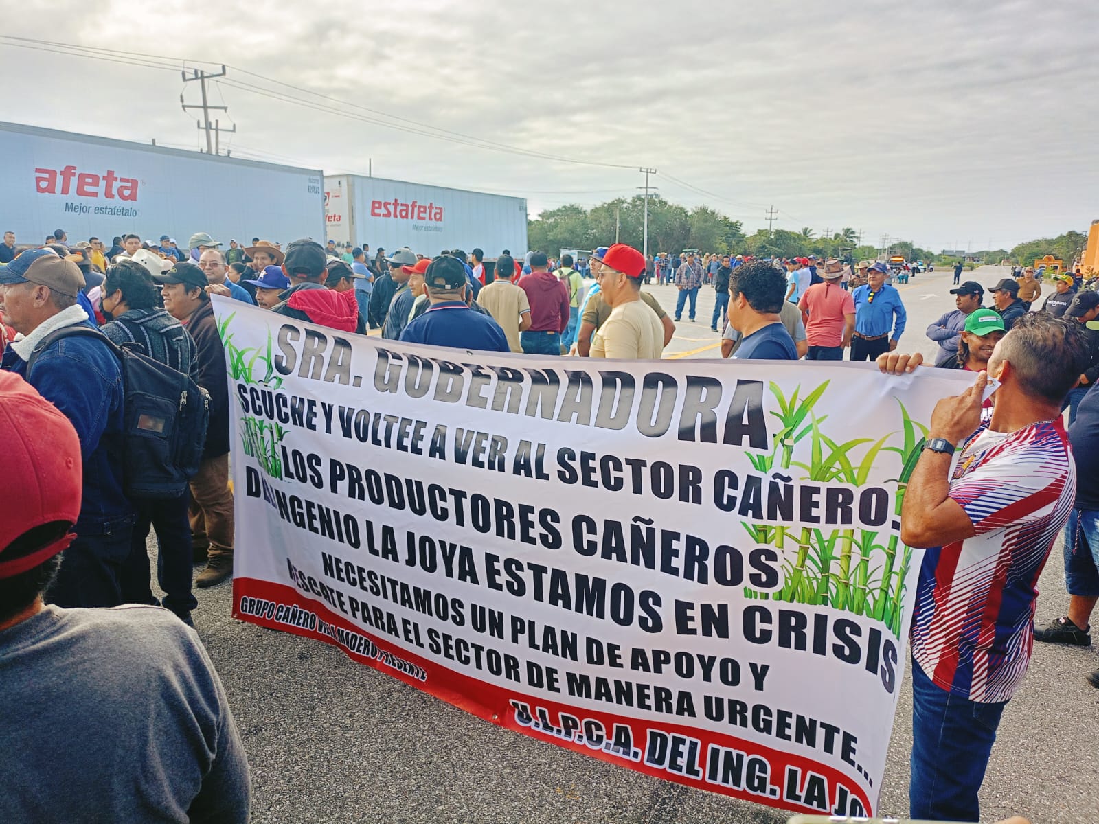 CAÑEROS BLOQUEAN CARRETERA Y EXIGEN A LAYDA SANSORES APOYOS ANTE CRISIS DEL SECTOR
