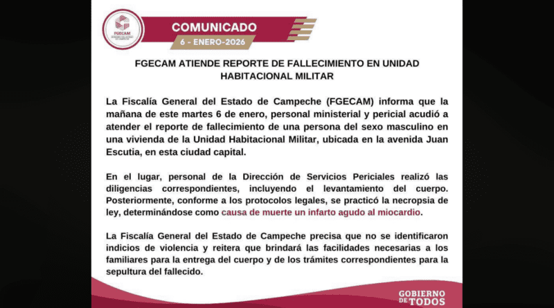 Read MoreLa Fiscalía General del Estado de Campeche informó que la causa de la muerte del hombre localizado en una vivienda