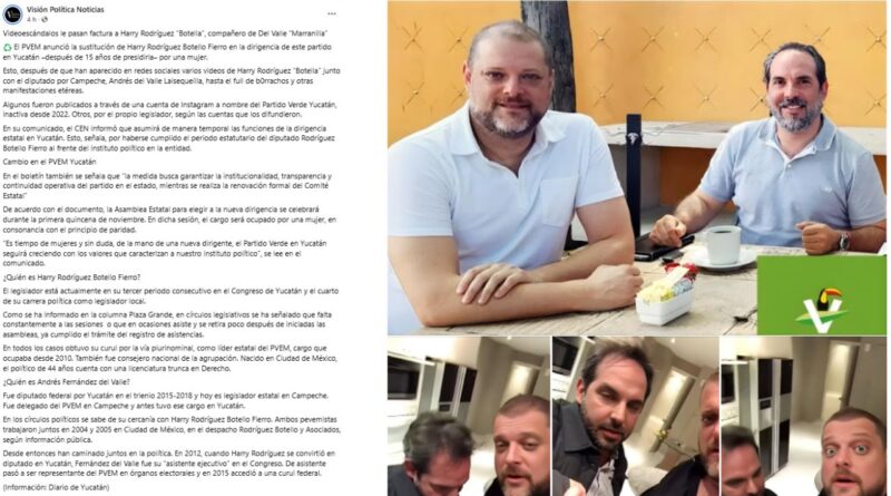 HARRY RODRÍGUEZ ES SUSTITUIDO DE LA DIRIGENCIA DEL PVEM TRAS VIDEOESCÁNDALOS CON DIPUTADO POR CAMPECHE, ANDRÉS DEL VALLE