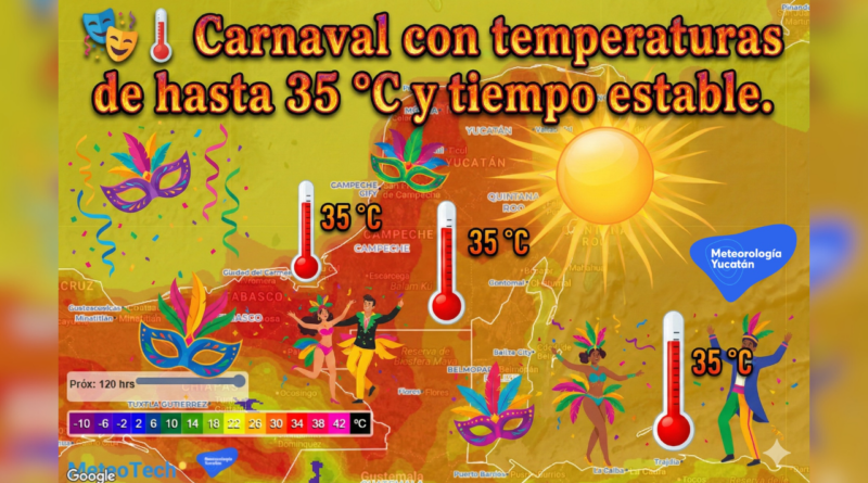 De acuerdo con los pronósticos de Meteorología Yucatán, en lo que resta de esta semana una circulación anticiclónica que cubre a la Península de Yucatán mantendrá el tiempo estable con temperaturas de entre 35 y 37 grados centígrados en Campeche y territorio yucateco, y de hasta 35 en Quintana Roo. Las sensaciones térmicas alcanzarían los 40.