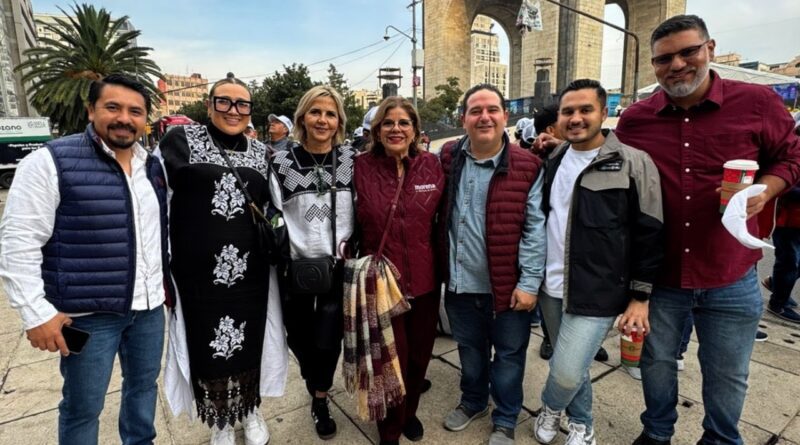 Encabezada por la secretaria de Gobierno, Liz Hernández, la comitiva que envió Campeche para apoyar el mitin encabezado por la presidenta Claudia Sheinbaum en el Zócalo, estuvo integrada también por la directora del Instituto de la Mujer del Estado (IMEC), Vania Kelleher; la secretaria de Cultura, Mónica Alejandra Sosa Rodríguez; y el director del Instituto de la Juventud del Estado de Campeche (Injucam), Guillermo Novelo Oreza, entre otros.