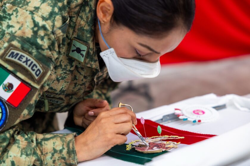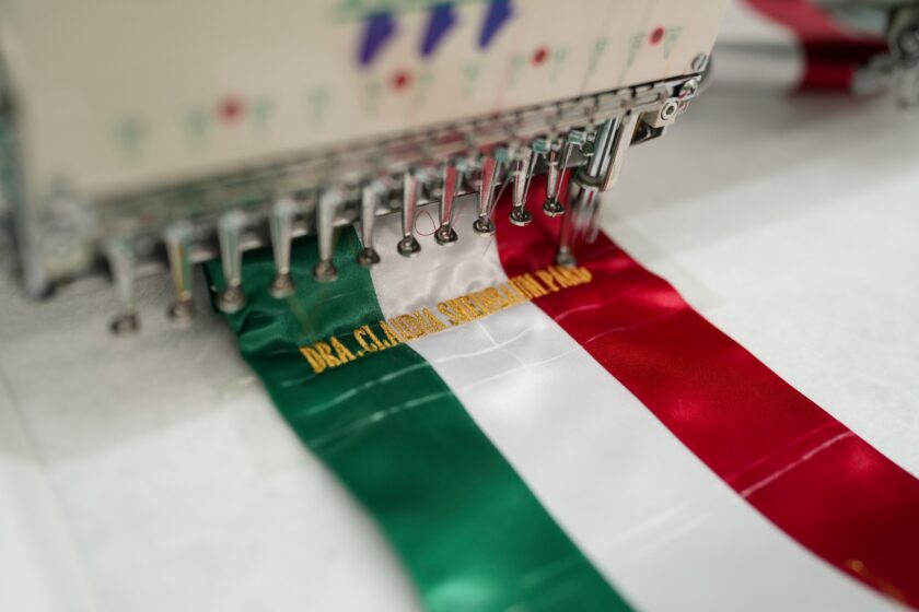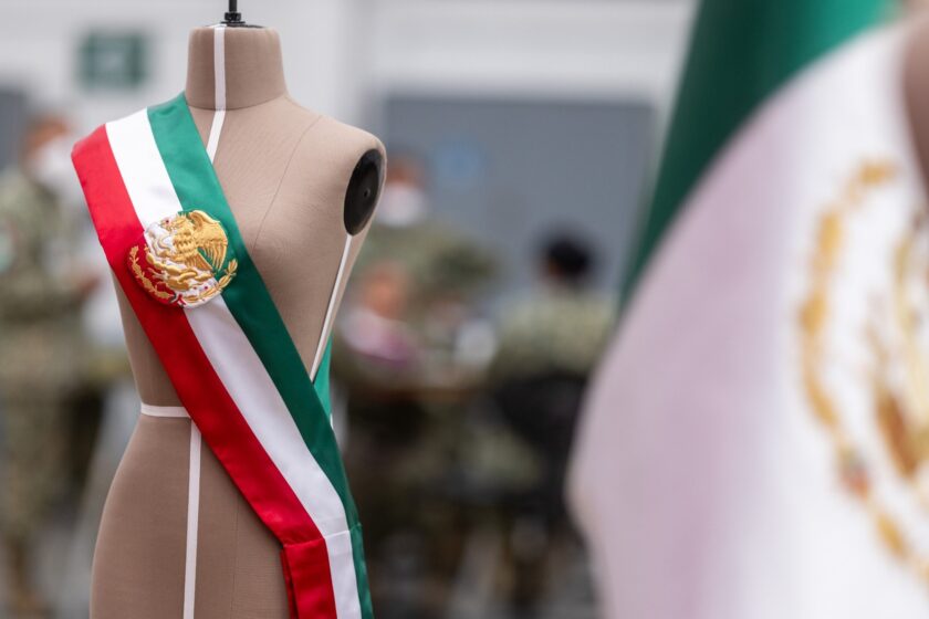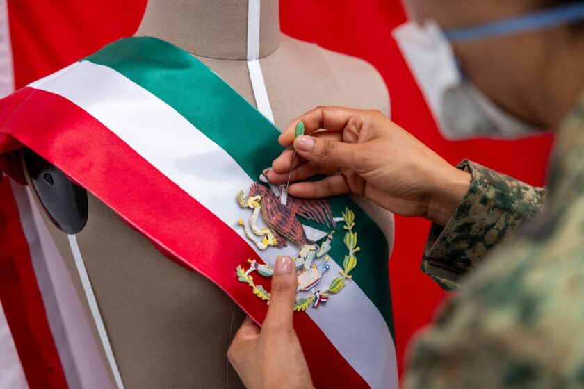 La mandataria usará una banda presidencial confeccionada en la Sastrería de la Dirección General de Fábricas de Vestuario y Equipo, a cargo de la Secretaría de la Defensa Nacional, y detrás de este trabajo estuvieron el sargento operario Laura Jocelyn Velázquez Cruz y los soldados operarios Evangelina Rentería de la Cruz y Tonantzi Blancas Constantino.