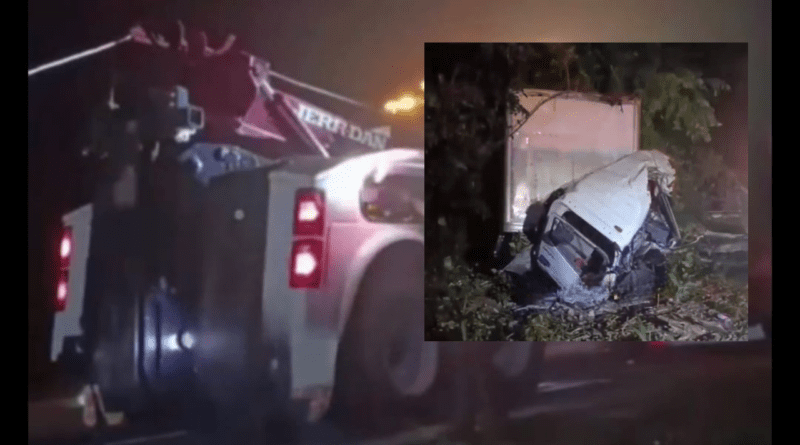 CONDUCTOR DORMITA AL VOLANTE Y SE SALE DE LA CARRETERA; LA CABINA QUEDA DESTROZADA