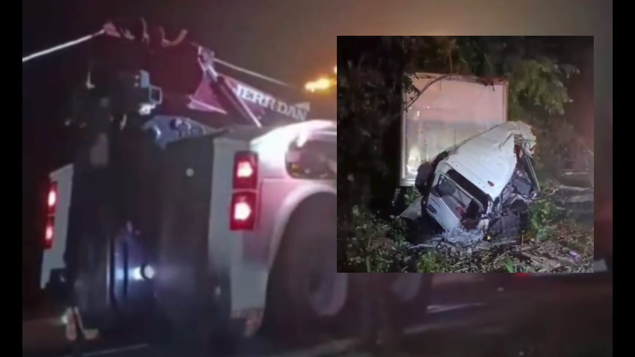 CONDUCTOR DORMITA AL VOLANTE Y SE SALE DE LA CARRETERA; LA CABINA QUEDA DESTROZADA