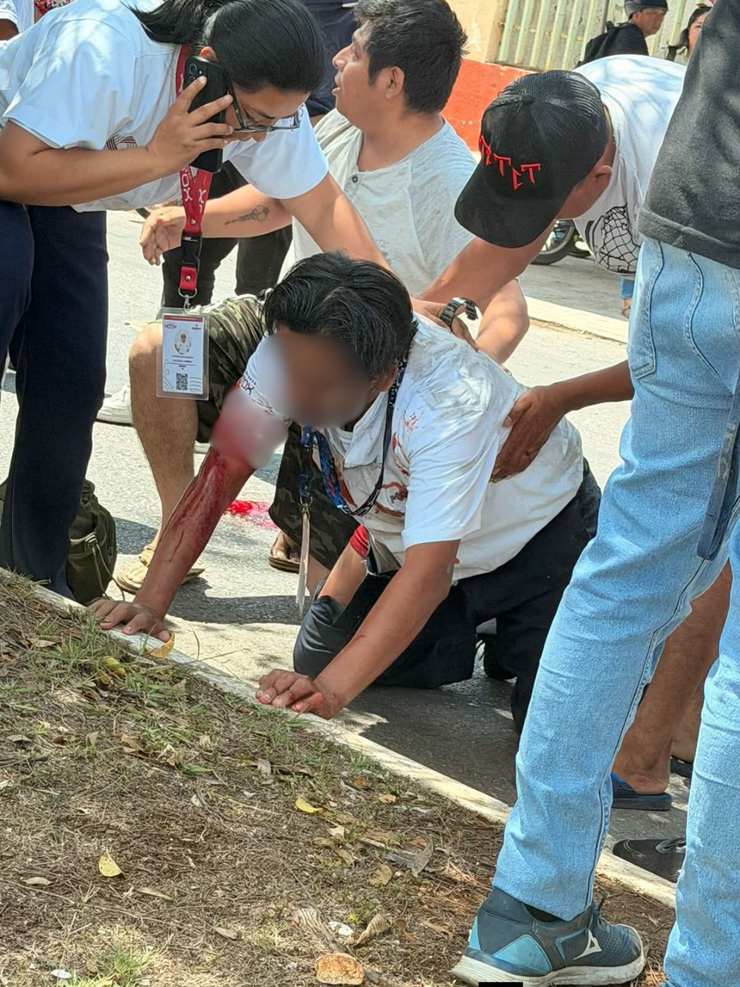 Agentes de la Policía Estatal intervinieron para evitar que la situación derivara en un linchamiento, mientras paramédicos de la Cruz Roja Mexicana brindaron atención al lesionado, quien permanecía tendido sobre la avenida Gustavo Díaz Ordaz, frente a la escuela secundaria Instituto Campechano, en medio de un charco de sangre. Tras recibir atención prehospitalaria fue trasladado a un hospital, en tanto el caso quedó a disposición del Ministerio Público.