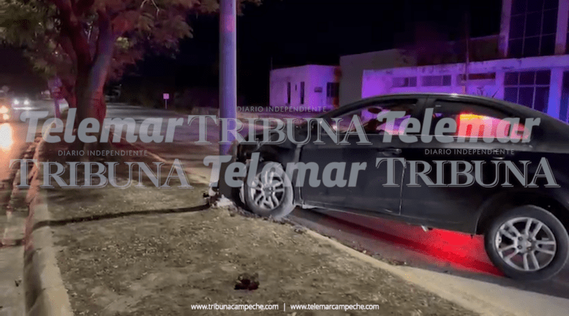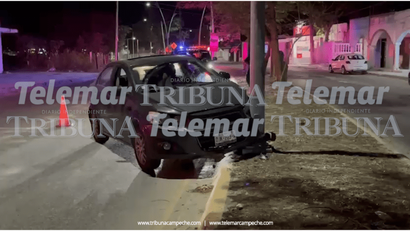 San Francisco de Campeche.- Daños materiales de regular cuantía dejó un accidente registrado la noche del miércoles en la avenida Héroe de Nacozari, donde una mujer perdió el control de su vehículo y terminó estrellándose contra un poste de alumbrado público, presuntamente por conducir a exceso de velocidad.
