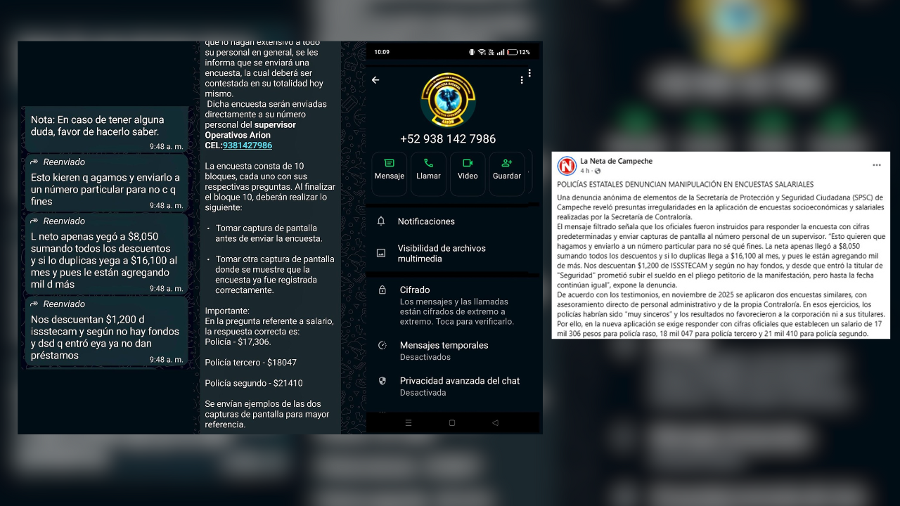 Mediante una denuncia anónima, policías estatales dieron a conocer presuntas irregularidades, concretamente cifras predeterminadas y la exigencia de enviar capturas de pantallas al número personal de un supervisor, en la aplicación de encuestas salariales realizadas por la Secretaría de la Contraloría, de acuerdo con La Neta.