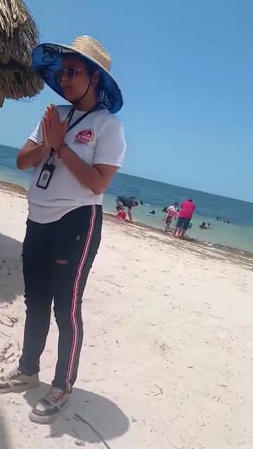 A su publicación agregó el texto: “El personal (la señorita Edith y un guardia), vino a intentar sacarnos de la playa, y luego dijeron que nos movamos para no estorbar a los de la palapa vip. Saqué mi celular para grabar y fue que cambio el discurso. Cabe aclarar también que sí hay espacio para los autos, pero tampoco ya nos dejan aparcar aquí”.