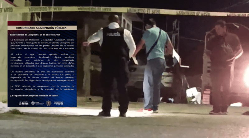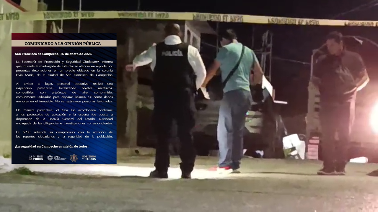 DISPAROS CONTRA VIVIENDA EN LA CAPITAL CAMPECHANA Y DETONACIONES EN EJIDO DE ESCÁRCEGA