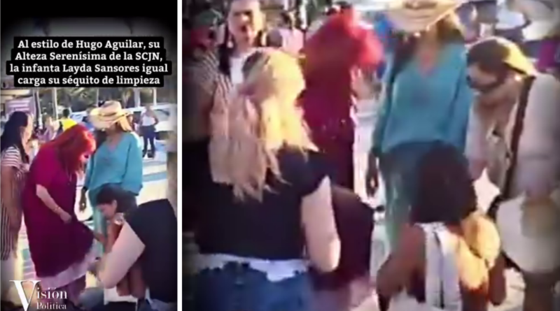 DOS MUJERES LE LIMPIAN A LAYDA LA PARTE BAJA DE SU VESTIDO… ¡AL ESTILO DEL MINISTRO HUGO AGUILAR!