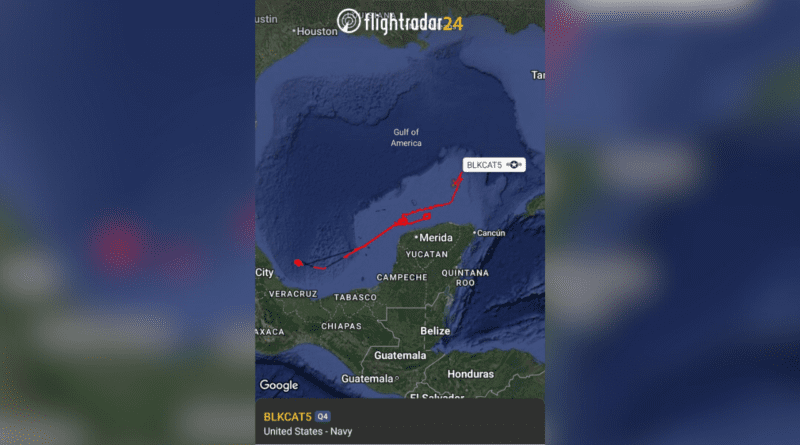 Durante la madrugada de hoy, una aeronave no tripulada o dron de la Marina Armada de Estados Unidos realizó trayectorias frente a las costas mexicanas de Yucatán, Campeche, Tabasco y Veracruz, lo que fue detectado por plataformas de datos abiertos, lo que anticipa despliegue militar norteamericano rumbo a suelo nacional.