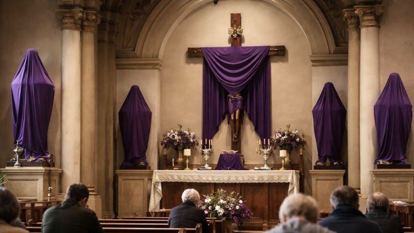El sitio Desde la Fe explica que durante la Cuaresma es común que en iglesias se cubran las imágenes sagradas con telas moradas o violetas, color asociado con la penitencia, conversión y preparación espiritual previa a la Pascua, para eliminar distracciones visuales y enfocar la atención en la reflexión sobre el sacrificio de Cristo.