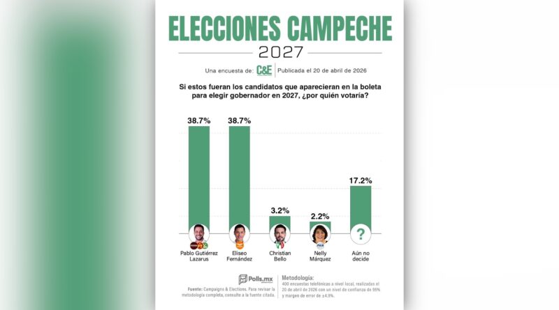 EMPATAN PABLO Y ELISEO POR LA GUBERNATURA EN ENCUESTA DE C&E RESEARCH; HACIA CONTIENDA CERRADA EN 2027