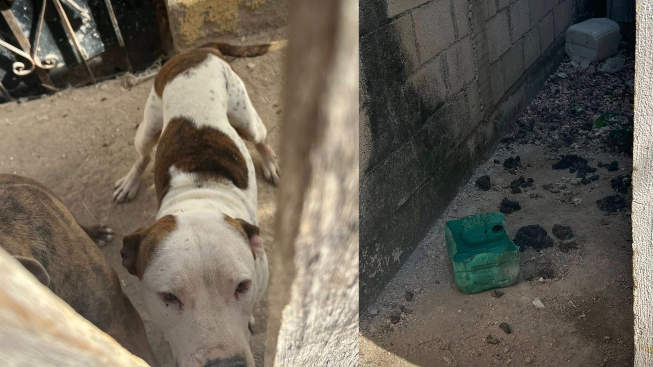 La Fiscalía Especializada en Delitos contra Animales, Ambiente y Ecosistemas atendió un reporte de maltrato animal en la colonia Minas, donde encontró a dos pitbull en un predio descuidado, con heces sin limpiar, un recipiente sin agua y con garrapatas.