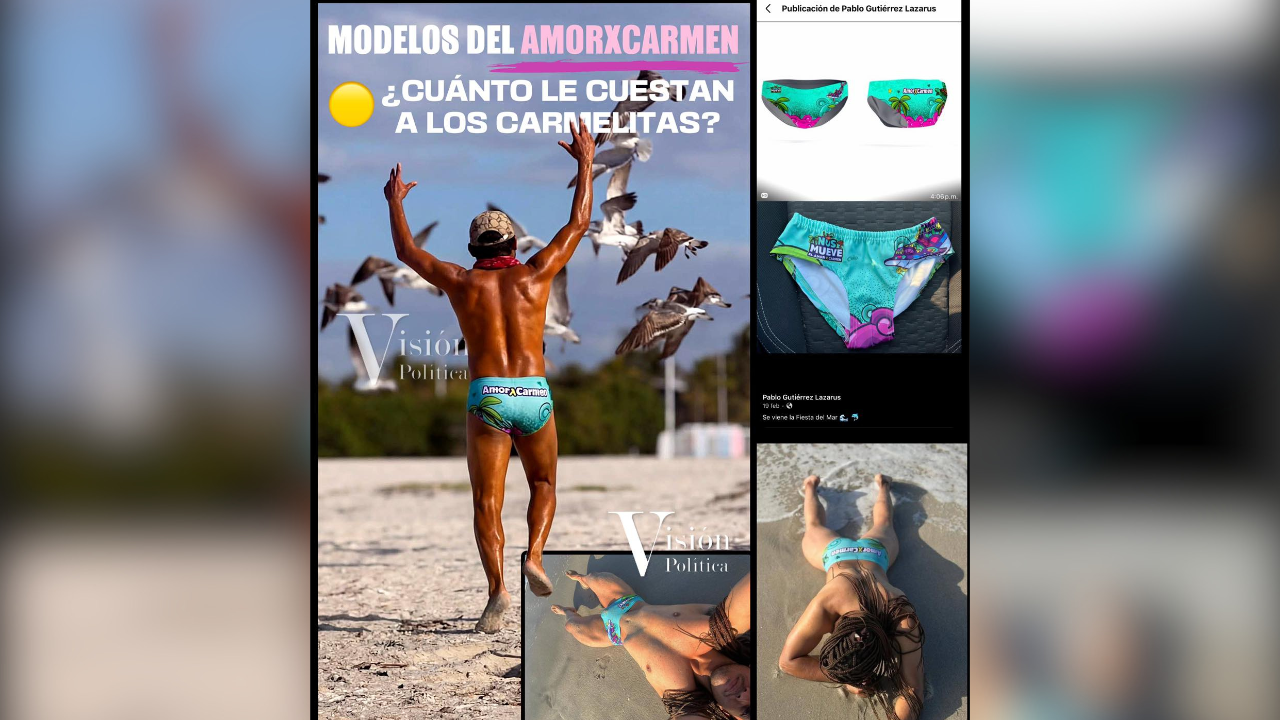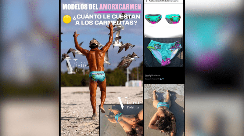 Pero no es todo, porque el edil creó tiendas que operan en edificios públicos para vender exclusivamente souvenirs y su línea de ropa, incluyendo las tangas, es decir, con recursos y medios públicos sigue promocionando su marca personal y haciendo negocio, a la par de campaña proselitista en todo el Estado bajo la bandera de AmorXCarmen.