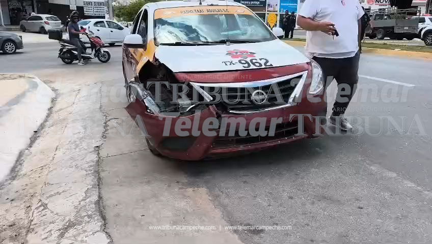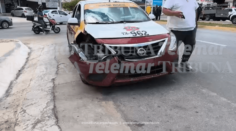 San Francisco de Campeche.- Fuerte hecho de tránsito se suscitó sobre la avenida José López Portillo, en cruzamiento con la prolongación de la calle Allende, luego de que el conductor de un taxi de la agrupación Águilas, al salir sin tomar las debidas precauciones, fue impactado casi de frente por la conductora de un automóvil Kia, quien excedía los límites de velocidad pero tenía preferencia. Sólo hubo pérdidas materiales aún no cuantificadas.