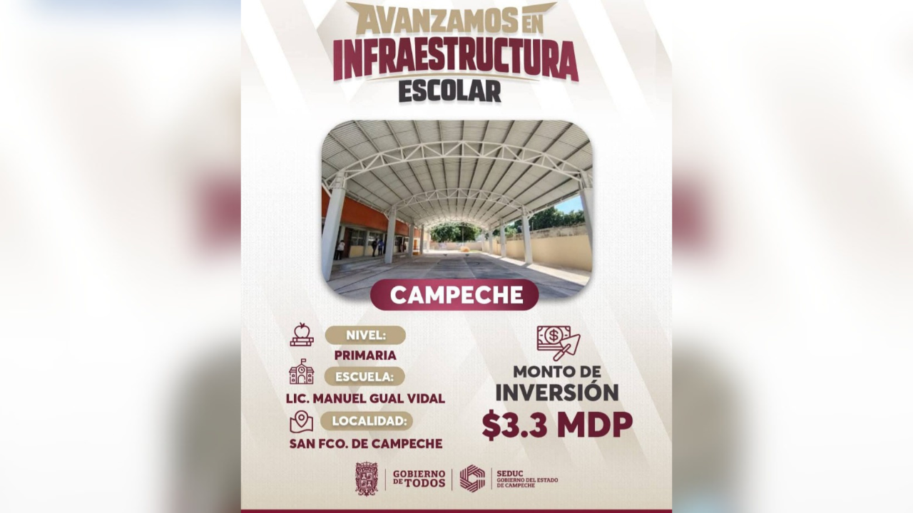 Con apenas 110 alumnos, docentes y personal administrativo, la Escuela Primaria “Lic. Manuel Gual Vidal”, ubicada en la ciudad capital ha recibido en menos de 2 años rehabilitaciones por 25.6 millones de pesos: 3.3 millones de pesos para una techumbre, 5.7 millones para aulas y oficinas y ahora se presumen 16.6 millones de pesos en “áreas reconstruidas y rehabilitadas”, sin embargo, no hay un desglose transparente, mientras decenas de escuelas en condiciones deplorable siguen en espera de la igualdad de oportunidades que pregona la gobernadora Layda Sansores.