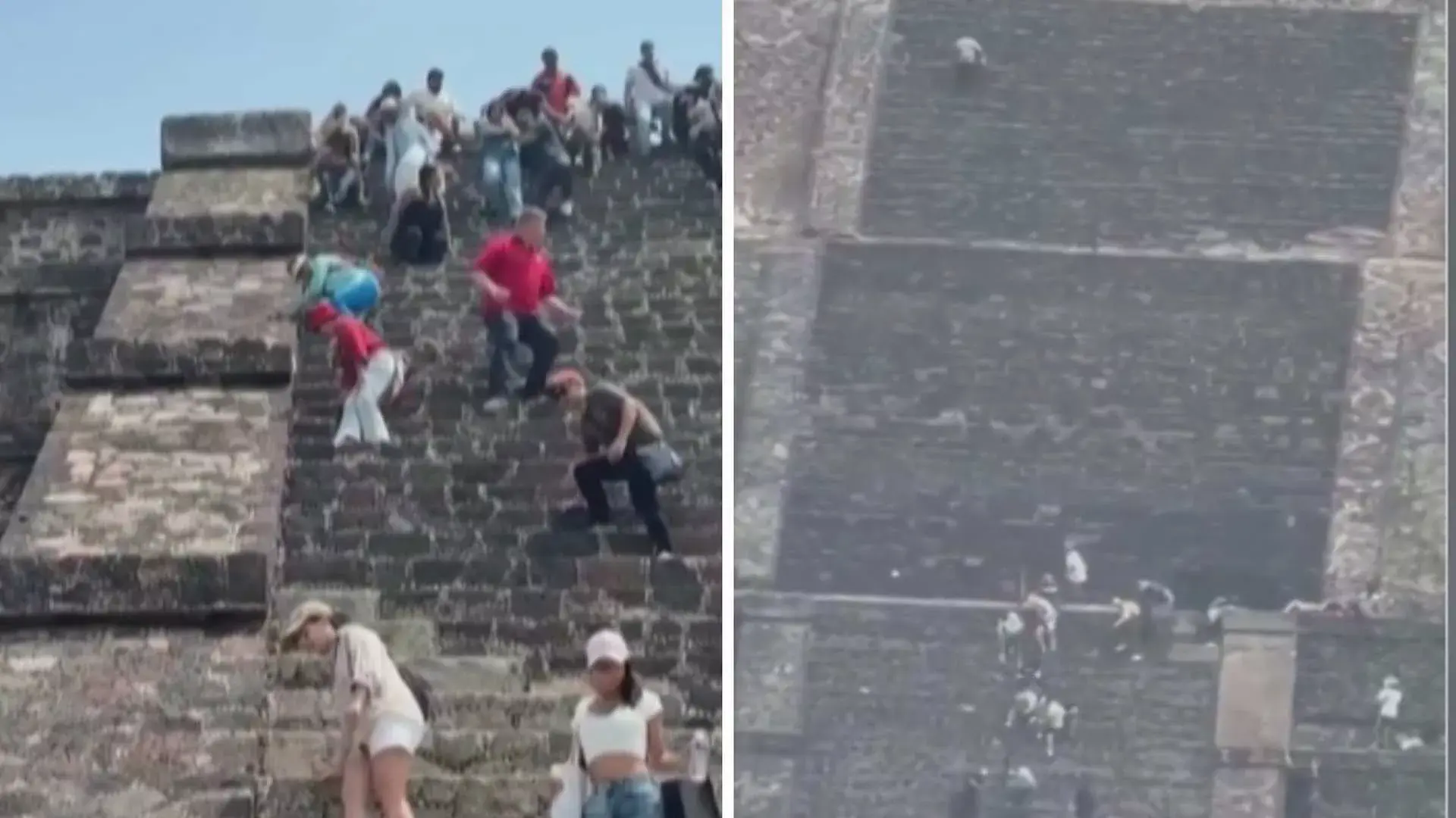 En las imágenes se aprecia también el momento en que, tras percatarse de que eran disparos, turistas bajan apresuradamente de la pirámide para ponerse a salvo.