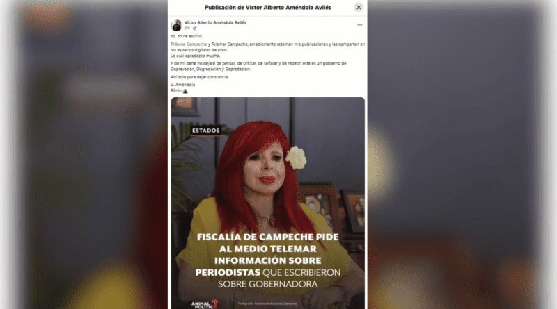 El exdirigente perredista refirió: “Yo. Yo he escrito. Tribuna Campeche y Telemar Campeche, amablemente retoman mis publicaciones y las comparten en los espacios digitales de ellos. Lo cual agradezco mucho. Y de mi parte no dejaré de pensar, de criticar, de señalar y de repetir: este es un Gobierno de Depravación, Degradación y Depredación. Ahí sólo para dejar constancia. V. Améndola”.