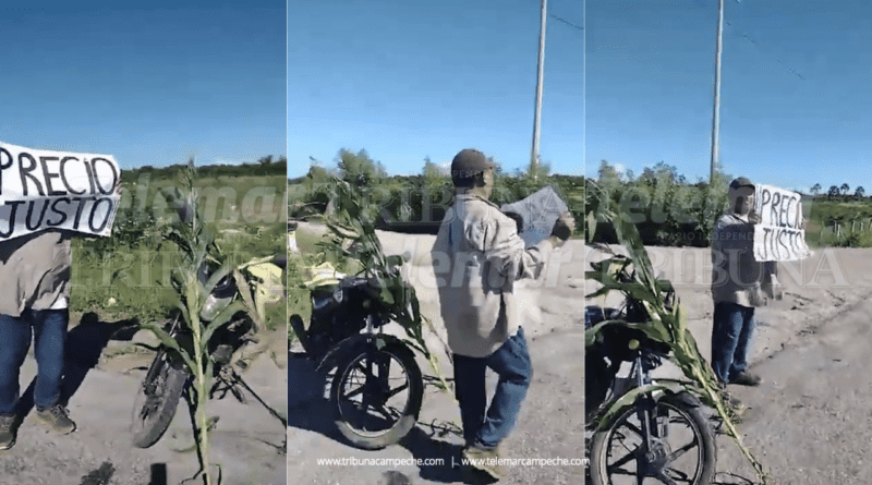 Tenabo.- Cansado del maltrato del Gobierno Federal, pero sobre todo de no obtener respuesta favorable a la reiterada petición de tener precio establecido, un productor de maíz y exautoridad ejidal tenabeña protestó a orillas de la carretera Campeche-Mérida.