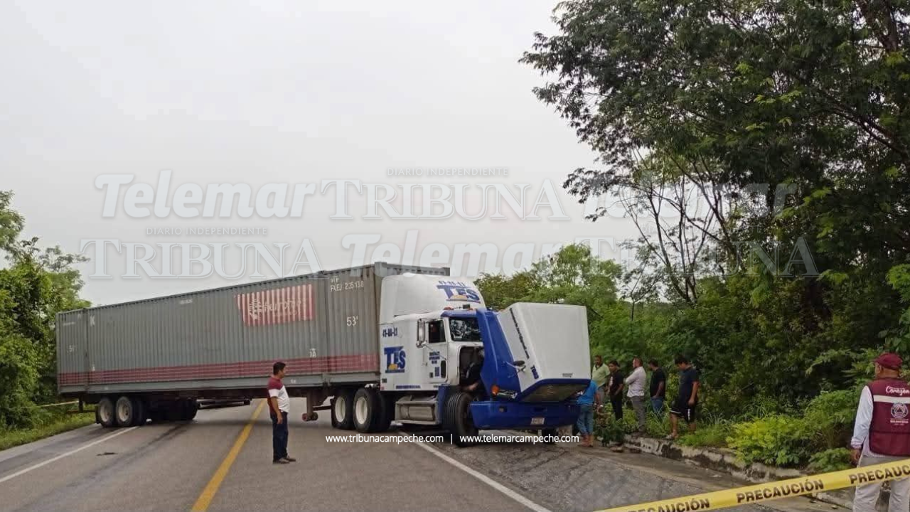 Ciudad del Carmen.- A la altura del kilómetro 6 de la carretera federal Escárcega–Chetumal, cerca del ejido Matamoros, un tráiler presentó una falla mecánica que puso en riesgo a quienes transitaban por la zona y la vida del conductor, quien por fortuna realizó maniobras que le permitieron controlar la unidad y evitar caer a un barranco.