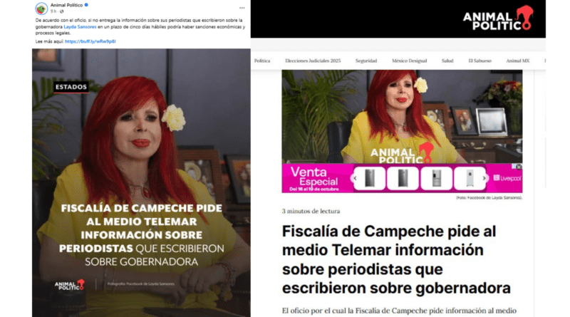 En una publicación en sus redes sociales, el sitio web de noticias y medios de comunicación denominado Animal Político replicó la solicitud de la Fiscalía General del Estado de Campeche a Producciones Telemar, y que “de acuerdo con el oficio, si no entrega la información sobre sus periodistas que escribieron sobre la gobernadora Layda Sansores, en un plazo de 5 días hábiles, podría haber sanciones económicas y procesos legales.