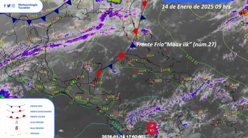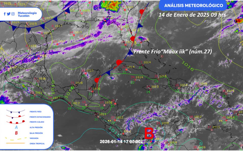 A partir de este jueves, el frente frío 28, el cual estará impulsado por una masa de aire polar de origen ártico, ocasionará un descenso marcado de las temperaturas, lluvias y vientos del norte. En Yucatán se esperan lluvias moderadas y un ambiente frío, con mínimas que podrían descender hasta los 8 °C durante el amanecer del viernes en algunas zonas.