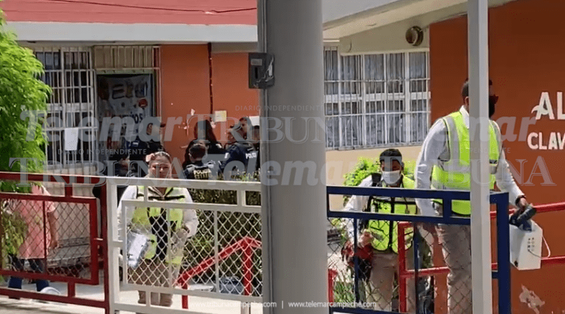 San Francisco de Campeche.- Paramédicos del Servicio de Atención Médica de Urgencias (SAMU) brindaron los primeros auxilios a una menor de edad y a una maestra del jardín de niños Alejandro Casanova Brito, ubicado en la colonia Esperanza, tras una explosión registrada en el plantel.