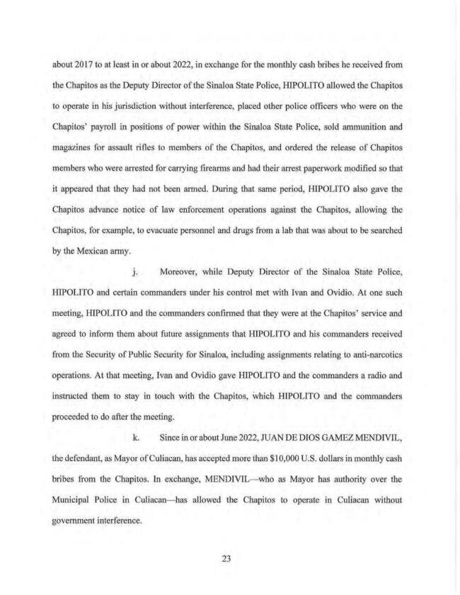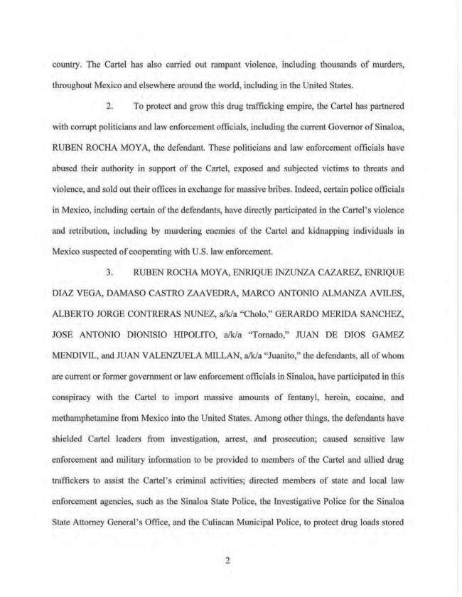 Pidió “que se investigue a fondo (a Rocha), sin encubrimientos ni simulaciones, y que, si existen elementos suficientes, sea separado del cargo y puesto a disposición de las autoridades competentes, tanto en México como en Estados Unidos de América, junto con sus cómplices. Nadie debe estar por encima de la ley”.