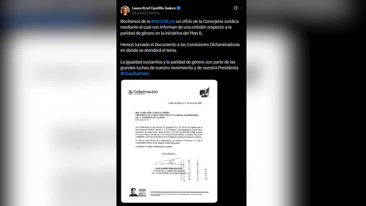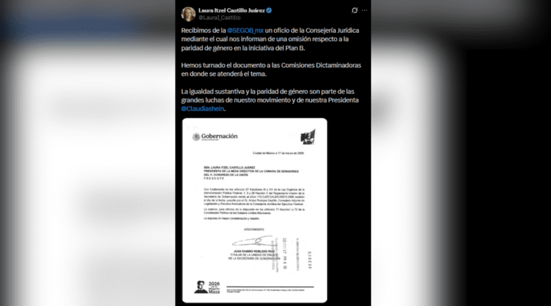 GOBIERNO DE SHEINBAUM ADMITE “OMISIÓN” EN PARIDAD DE GÉNERO EN EL PLAN B