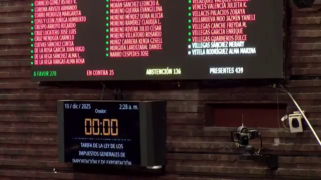 Con 278 votos a favor y 25 en contra y 136 abstenciones, la Cámara de Diputados aprobó en horas nocturnas el paquete que crea y aumenta aranceles para mil 463 fracciones arancelarias de países sin tratado de libre comercio, lo que afectará desde textiles y autopartes hasta plásticos, ropa, maquillaje, juguetes, electrodomésticos, motores, calzado, papel, cartón, marroquinería y muebles, por lo cual todo se encarecerá.