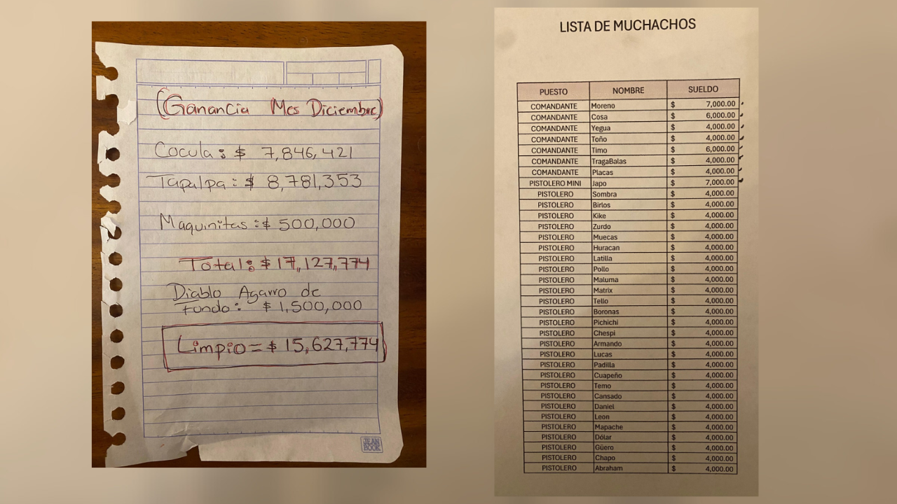 Los documentos encontrados muestran que en diciembre de 2025, el CJNG tuvo ingresos por 8 millones 781 mil 353 pesos en Tapalpa y zonas cercanas, y reporta pagos a autoridades locales que representan un porcentaje significativo de la nómina municipal de seguridad.
