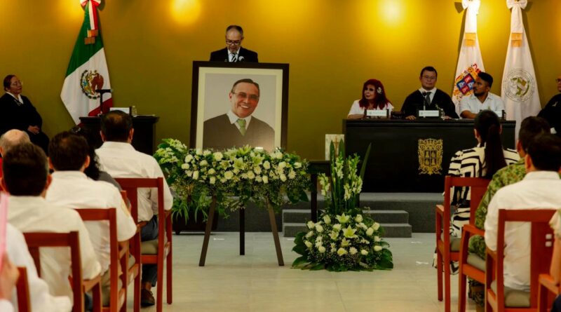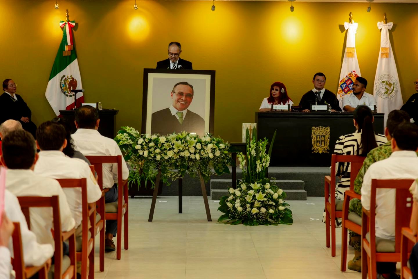 Acompañada, entre otros, del presidente del Congreso del Estado, José Antonio Jiménez, y de su exasesor jurídico y hoy magistrado, el poblano Juan Pedro Alcudia, la gobernadora Layda Sansores asistió el homenaje póstumo a quien fuera magistrado presidente del Poder Judicial de Campeche, Manuel Enrique Minet Marrero.